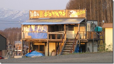 Niseko (Japan) is a dual season resort town. Skiing in the winter, white-water rafting in the summer. Pretty sure this is a summer joint. Nobody told me if it was any good. Though judging by the tarps and plastic windows I'm guessing it is the best around.
