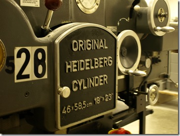 The original Heidelberg cylinder. It is a printing machine. I'm not quite sure what type of printing, but it does something. I got to see this on a tour of a small printing plant a month ago. Prior to figuring out even the basic settings on my camera, this is one of few successes of the day. Enjoy!