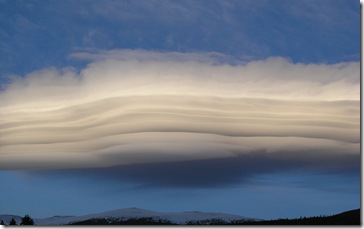 Yes it is real. Some people don't believe it, but it was. Pretty much my favorite cloud ever, this shot is from my back door balcony when I lived in Colorado. This view no longer remains, as they have built a small complex of 5 story condo buildings that would cover up the continental divide peaks on the lower portion. How sad. But how awesome it was to be there was what it was.