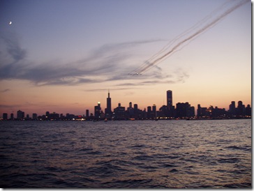 Chicago skyline, jet flyover, sunset sail. Given that, I couldn't take out the tripod on a moving vessel for the long exposure night shot. Guess I'll just have to live with grainy.